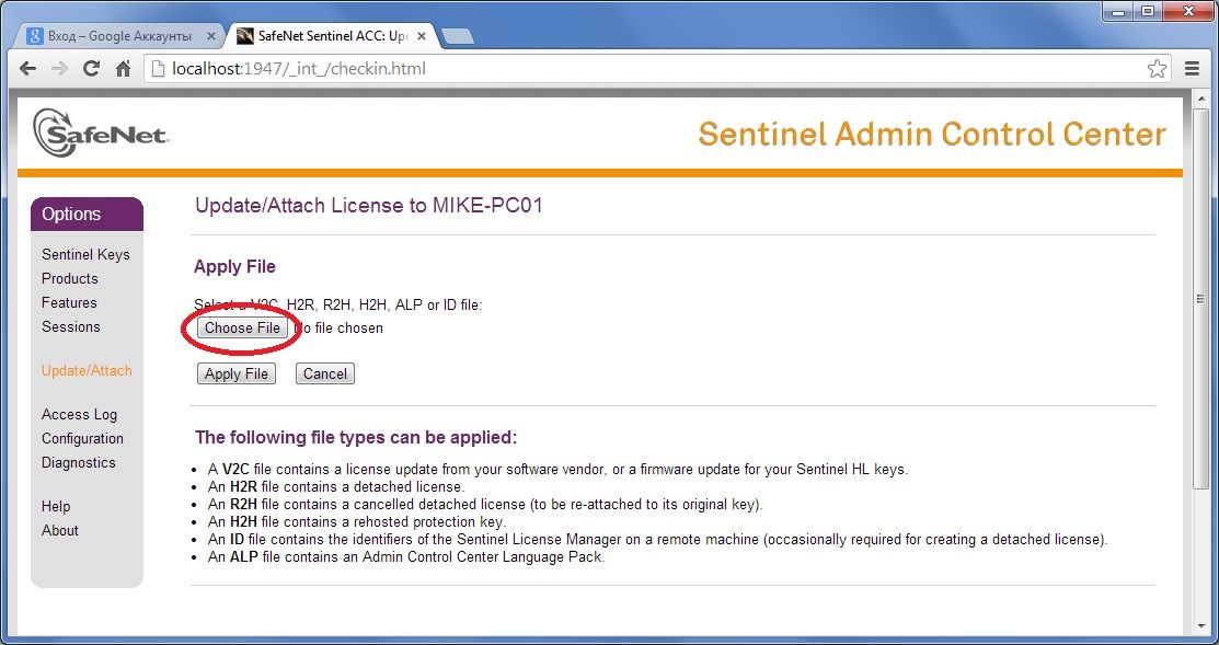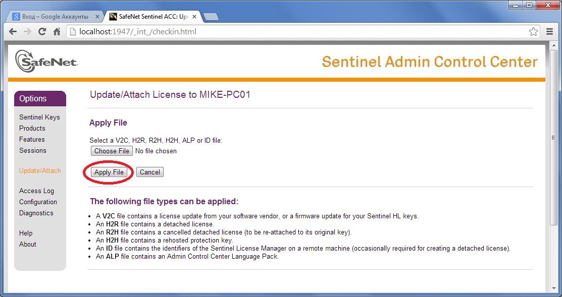 5. Нажмите кнопку «Apply File» для применения лицензии.
