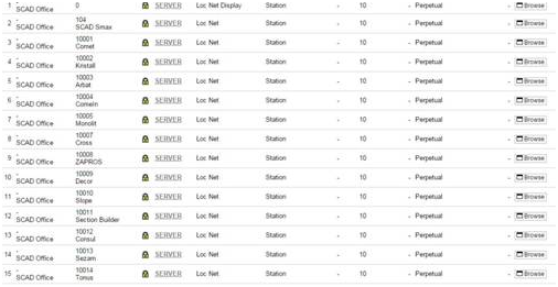 - Столбец «Logins» показывает количество занятых (используемых) лицензий для каждого модуля.